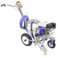 Краска может наноситься, к примеру, безвоздушным способом под давлением около 100 атмосфер. Применяется такое распыление для красящих веществ большой плотности; у этого способа самые высокие показатели производительности. В линейке Graco для выполнения подобного вида работ предназначены модели разметочных машин линии LineLazer.